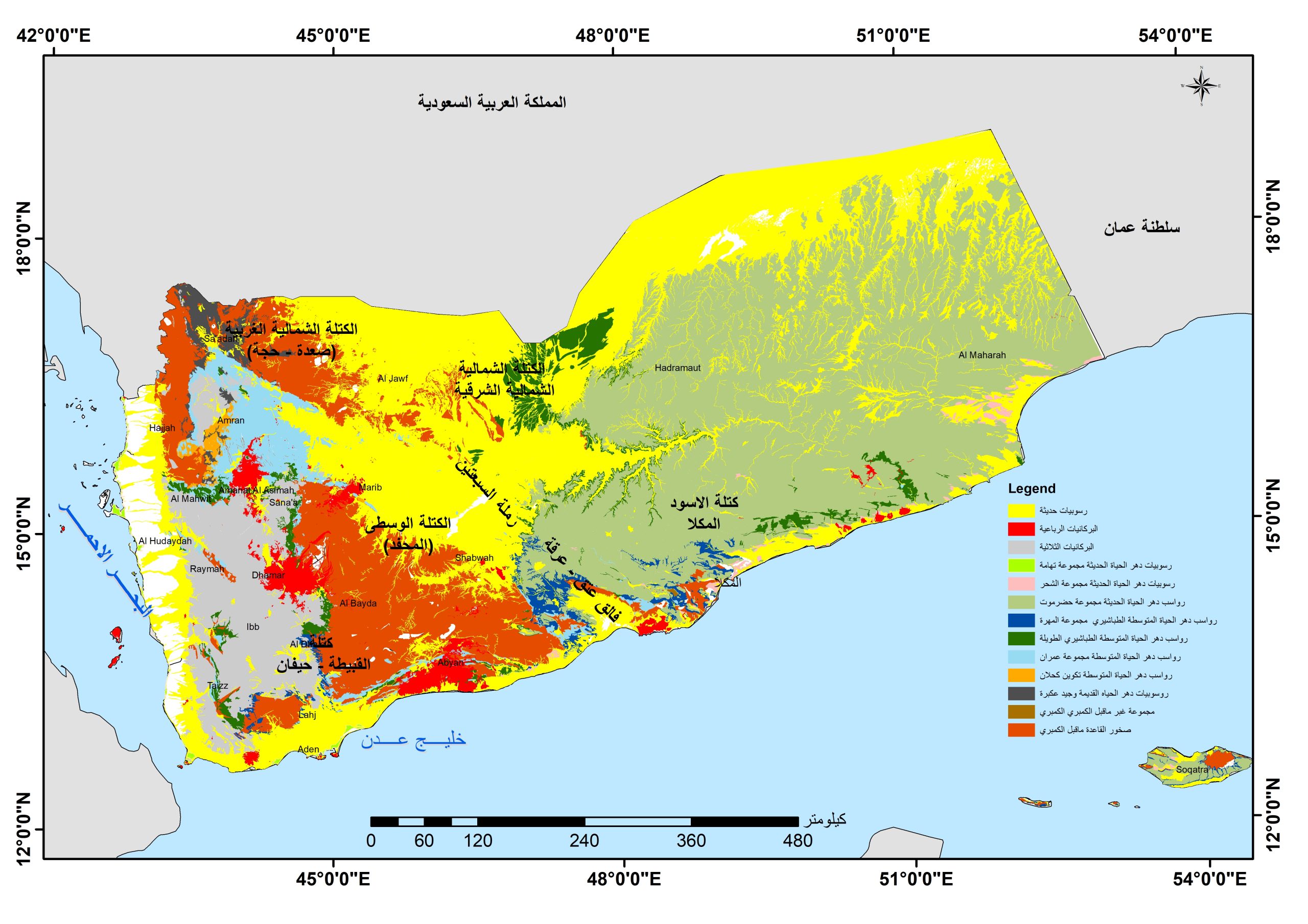 وعليه فإن جيولوجية اليمن يمكن تقسيمها وبصورة موجزة الى: -