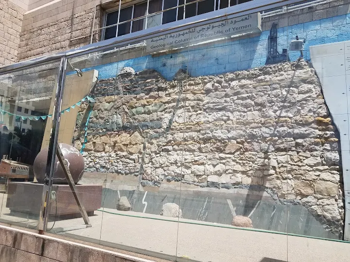وهو لوحة حجرية بارتفاع ثلاثة أمتار وعرض خمسة أمتار تقريبا، تمثل العمود الجيولوجي من أنواع مختلفة من الصخور التي توجد في البيئة اليمنية والعالم، وفيها أقدم الصخور التي يتجاوز عمرها 299 مليون سنة، وهناك صخور عمرها 4.5 ملايين وصولا إلى الصخور الحديثة والبركانية في اليمن، وتم تقسيم العمود الجيولوجي لليمن حسب العمر لكل نوع من الأحجار، كما أن اليمن تتميز بوفرة أنواع أحجار البناء والزينة تم إضافتها إلى العمود الجيولوجي لتكون عنوانا مختصرا يعكس ثراء وتنوع البيئة اليمنية
